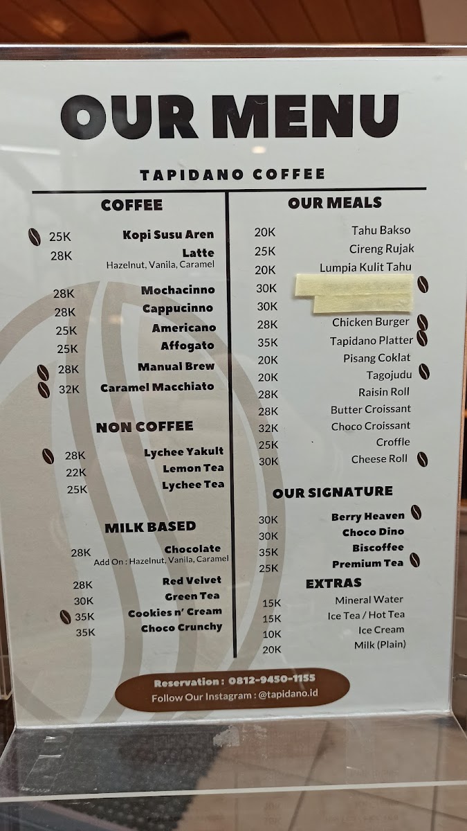 Guests appreciate thoughtful extras like complimentary Takjil during Iftar and a designated praying room, enhancing the welcoming atmosphere. With engaging board games and a cozy vibe, Tapidano Coffee proves to be more than just a coffee shop; it’s a community hub.